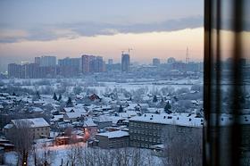 Жанровые фотографии. Вид на левый берег Новосибирска. Частный сектор района "Лесоперевалка" на фоне многоэтажных жилых домов Ленинского района.