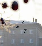 Виды Новосибирска во время морозов. Жанровая фотография. Стая голубей.