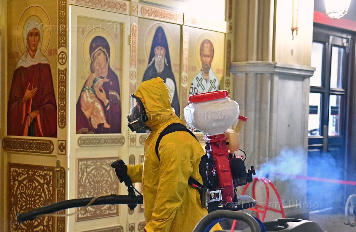 Measures to limit the spread of coronavirus infection COVID-19. Disinfection of the Leningradsky railway station and the territory adjacent to it.
