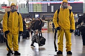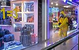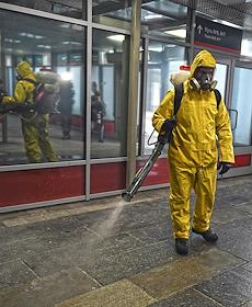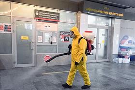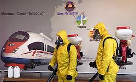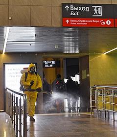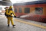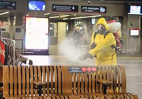 Measures to limit the spread of coronavirus infection COVID-19. Disinfection of the Leningradsky railway station and the territory adjacent to it.