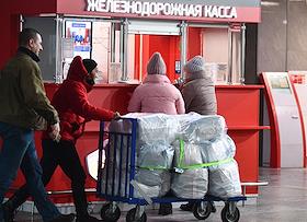 Genre photography. Passengers at the ticket office at the Leningradsky railway station.