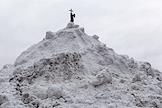 Виды Санкт-Петербурга после снегопада. Жанровая фотография. Снежный сугроб на Дворцовой площади и ангел Александровской колонны.