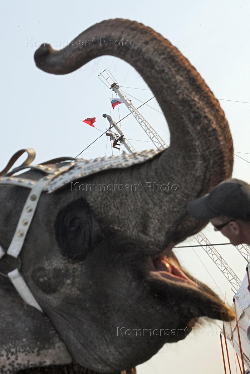 Участники международной программы "Золото мирового цирка" во время выступления в передвижном цирке на Поклонной горе.