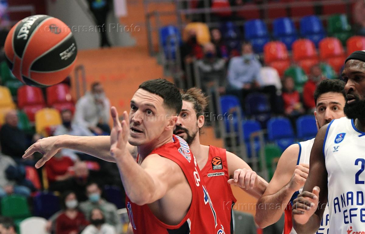 Евролига по баскетболу. Матч между командами ЦСКА (Москва, Россия) - "Анадолу Эфес" (Стамбул, Турция) на стадионе "Мегаспорт". Игрок команды ЦСКА Уилл Клайберн (в центре) во время матча.