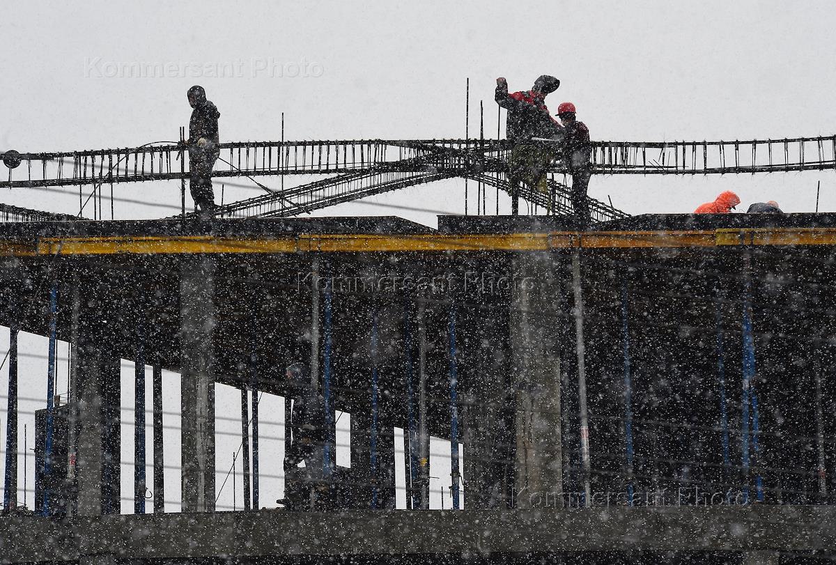 Жанровая фотография. Строительные работы в снегопад.