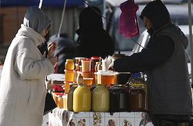 Жанровая фотография. Уличная торговля. Продажа меда.