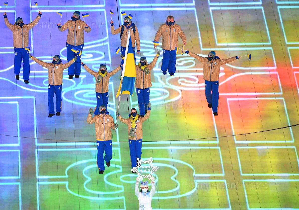 XXIV зимние Олимпийские игры в Пекине. День первый. Церемония открытия на Национальном стадионе. Олимпийская команда Украины во время парада атлетов на церемонии открытия.