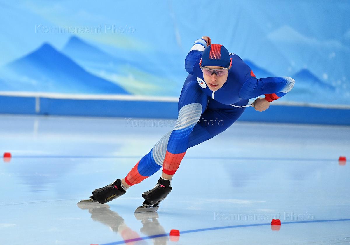 XXIV Winter Olympic Games in Beijing. Competition at a distance of 1500 meters among women in speed skating at the National Skating Stadium. Russian athlete Elizaveta Golubeva before the race.