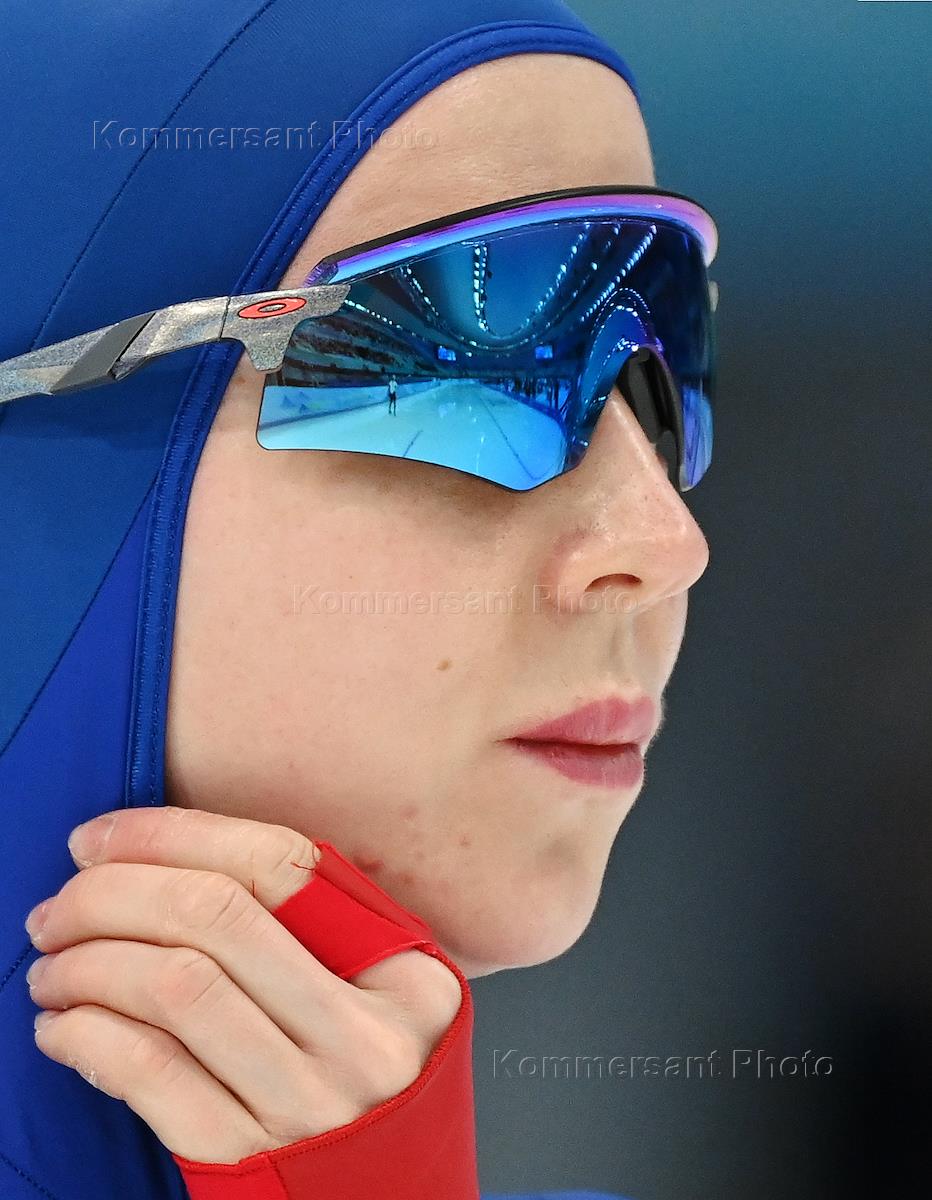 XXIV Winter Olympic Games in Beijing. Competition at a distance of 1500 meters among women in speed skating at the National Skating Stadium. Russian athlete Elizaveta Golubeva before the race.