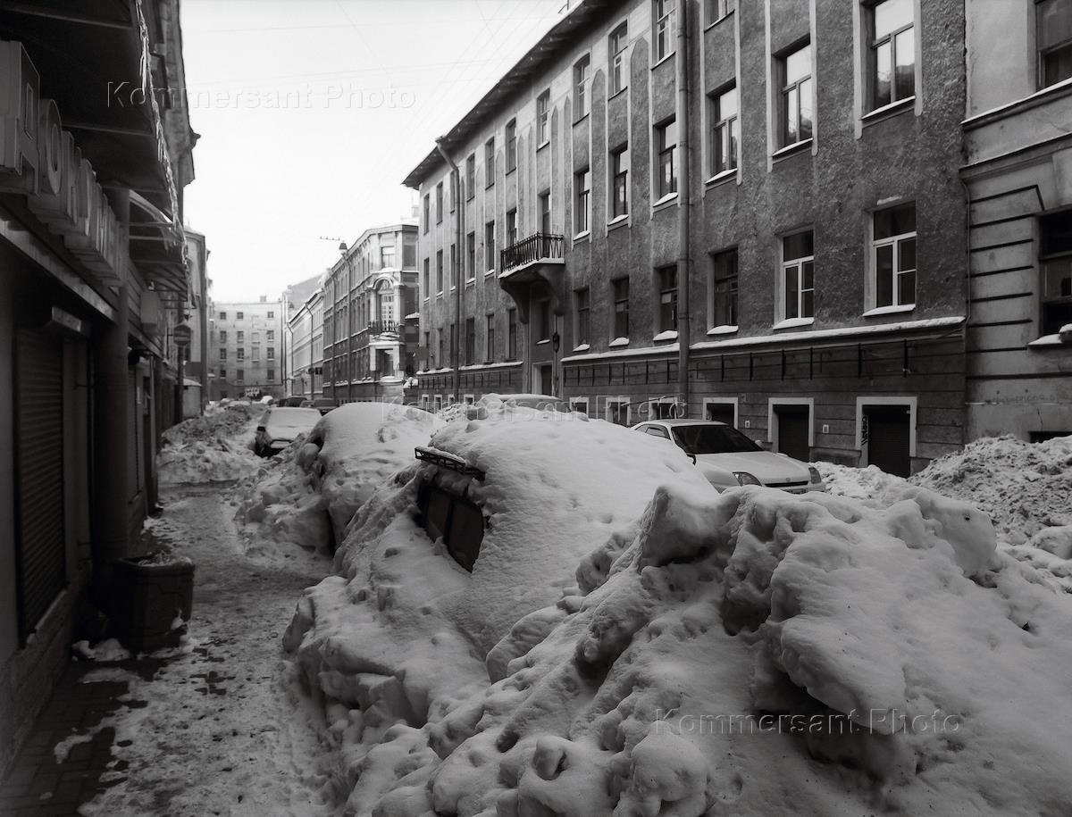 Виды зимнего Санкт-Петербурга. Жанровая фотография. Сугробы в центре города. Автомобили заваленные снегом.