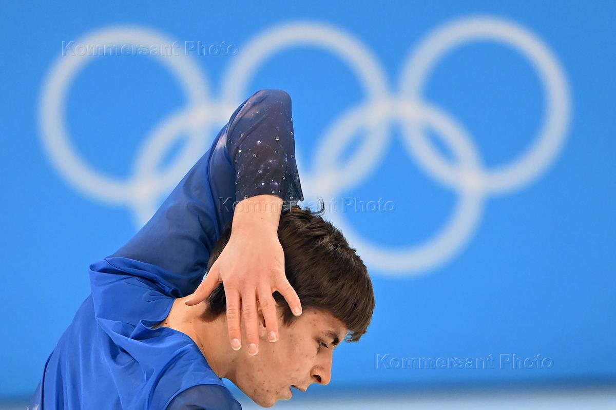 XXIV Winter Olympic Games in Beijing. Figure skating competitions in the Capital Sports Palace. Russian figure skater Andrey Mozalev during a warm-up before performing a free program in the men's singles.