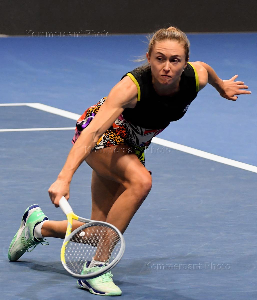 VII Международный женский теннисный турнир St Petersburg Ladies Trophy в КСК "Сибур Арена". Белорусская теннисистка Александра Саснович во время матча с румынской теннисисткой Жаклин Кристиан.