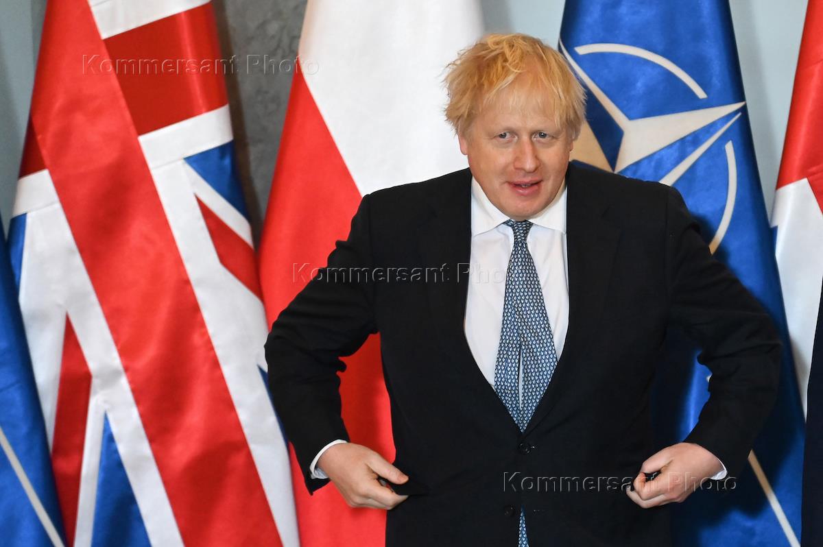 Визит премьер-министра Великобритании Бориса Джонсона в Польшу. Премьер-министр Великобритании Боирс Джонсон во время пресс-конференции по итогам встречи с премьер-министром Польши Матеушем Моравецким.