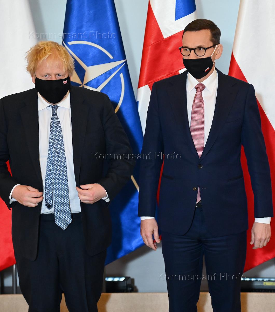 Визит премьер-министра Великобритании Бориса Джонсона в Польшу. Премьер-министр Великобритании Боирс Джонсон во время встречи с премьер-министром Польши Матеушем Моравецким.