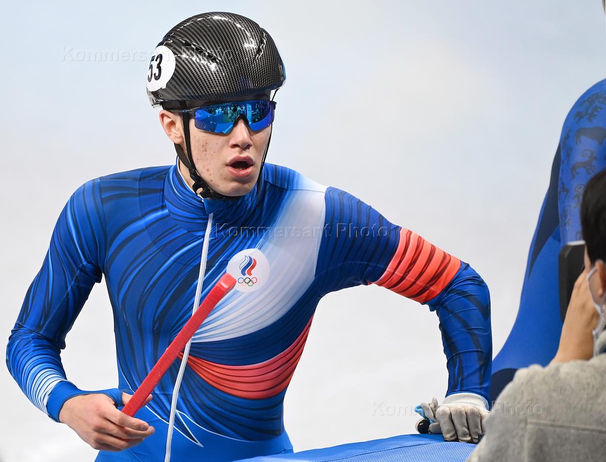XXIV зимние Олимпийские игры в Пекине. Соревнования по шорт-треку среди мужчин на 500 м в Столичном дворце спорта (Capital Indoor Stadium). Российский спортсмен, член сборной команды ОКР Константин Ивлиев во время соревнований.