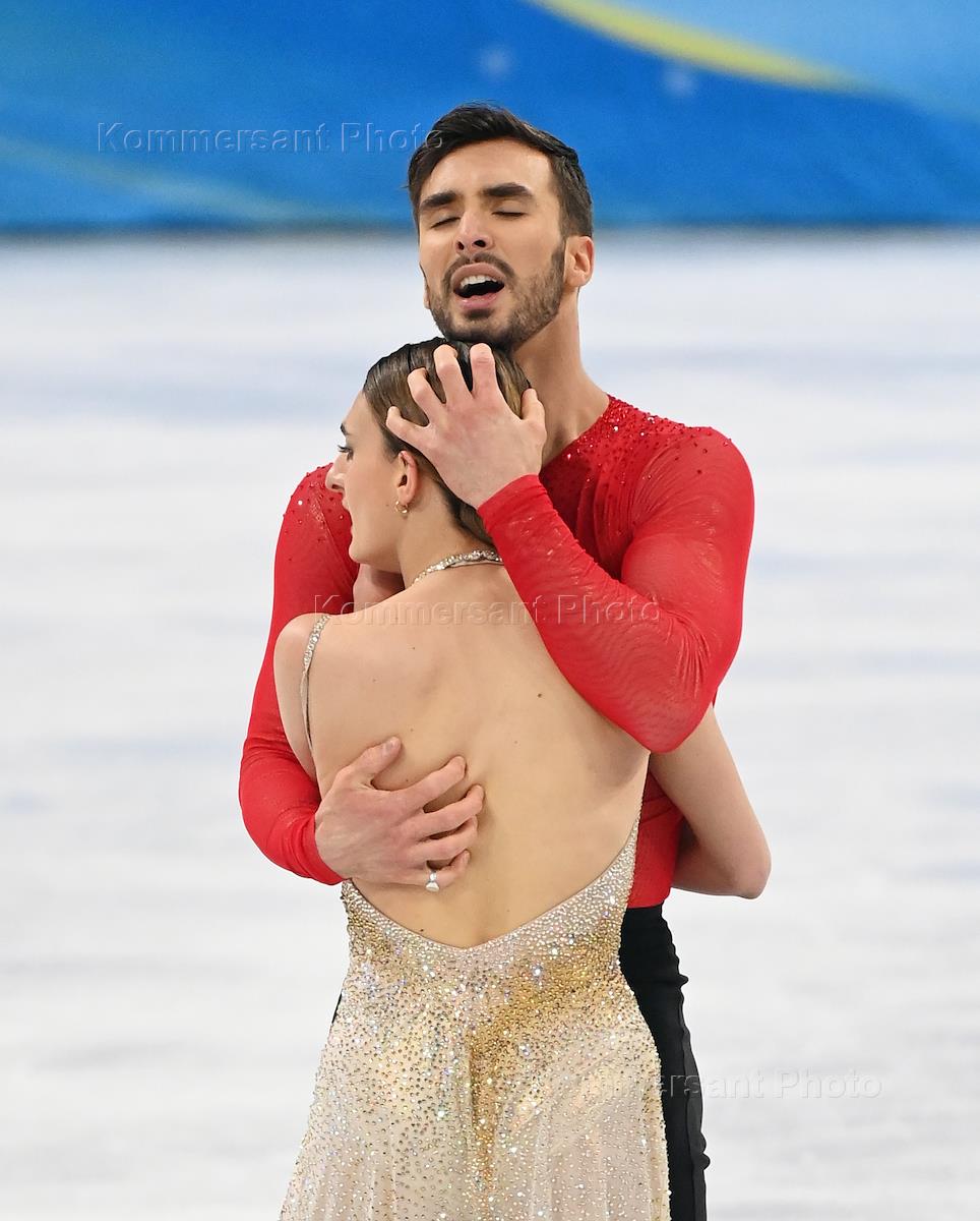 XXIV зимние Олимпийские игры в Пекине. Соревнования по фигурному катанию в Столичном дворце спорта. Танцы на льду. Произвольный танец. Французские спортсмены Габриэлла Пападакис и Гийом Сизерон во время выступления.