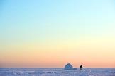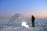 Дом изо льда, построенный участником фестиваля Иглу-2022 "Город эскимосов" на льду Новосибирского водохранилища у пляжа "Бумеранг".