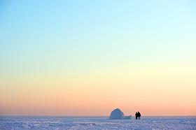 Участники фестиваля Иглу-2022 "Город эскимосов" на льду Новосибирского водохранилища у пляжа "Бумеранг".