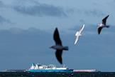 Плавучее хранилище сжиженного природного газа (СПГ), оснащенное судовой регазификационной установкой, "Маршал Василевский" в море.