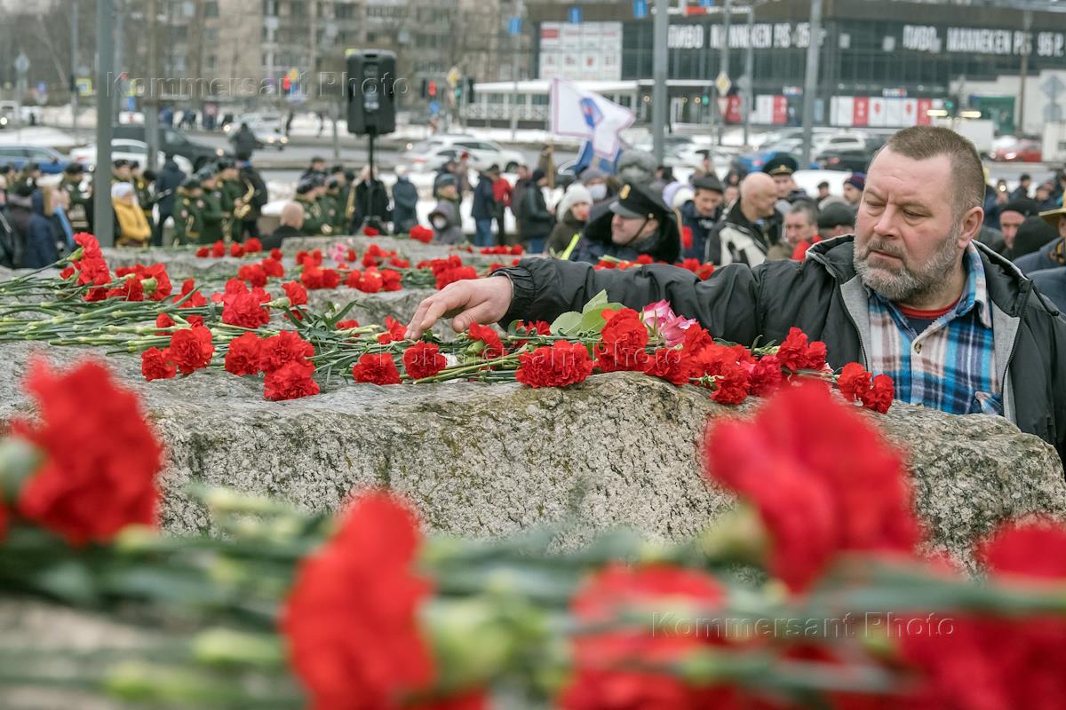 Митинг, посвященный дню вывода вывода советских войск из Афганистана, прошел в Парке Интернационалистов. Участники во время церемонии возложения цветов.