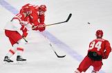 XXIV зимние Олимпийские игры в Пекине. 1/4 финала по хоккею с шайбой на стадионе "Укэсун Спорт-центр". Матч между сборными командами России и Дании. Игрок сборной России Кирилл Семенов (справа) во время матча.
