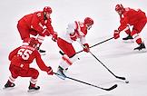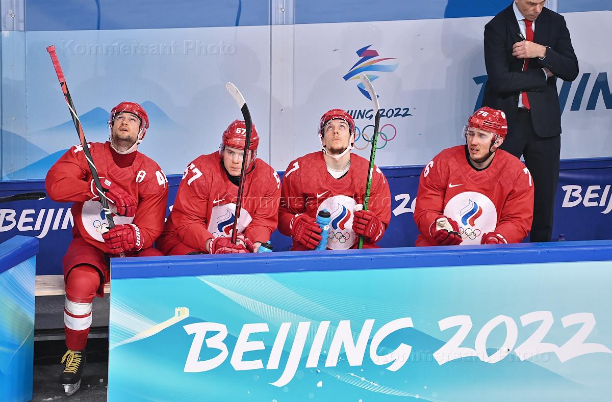XXIV зимние Олимпийские игры в Пекине. 1/4 финала по хоккею с шайбой на стадионе "Укэсун Спорт-центр". Матч между сборными командами России и Дании. Игроки сборной России во время матча.