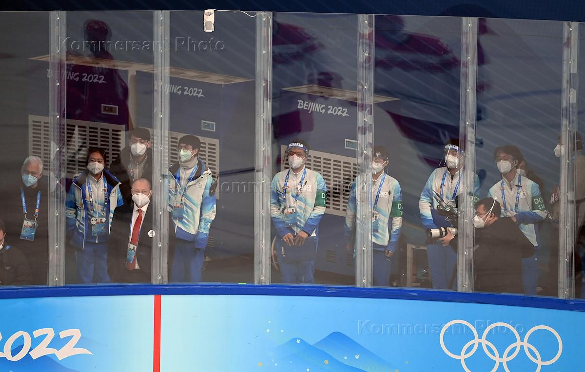 XXIV зимние Олимпийские игры в Пекине. 1/4 финала по хоккею с шайбой на стадионе "Укэсун Спорт-центр". Матч между сборными командами России и Дании. Генеральный менеджер сборной команды России по хоккею Илья Ковальчук во время матча.