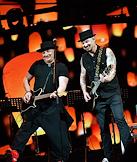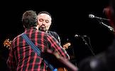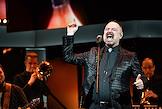 Юбилейный концерт музыканта Максима Леонидова в Московском Дворце Молодежи. Певец, актер, автор песен и телеведущий Максим Леонидов (справа) и музыкант, лидер группы "Машина времени" Андрей Макаревич (слева) во время концерта.