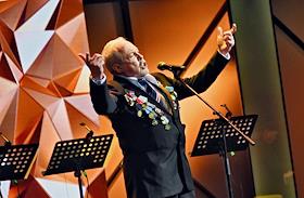 Юбилейный концерт музыканта Максима Леонидова в Московском Дворце Молодежи. Музыкант, лидер группы "Машина времени" Андрей Макаревич во время концерта.