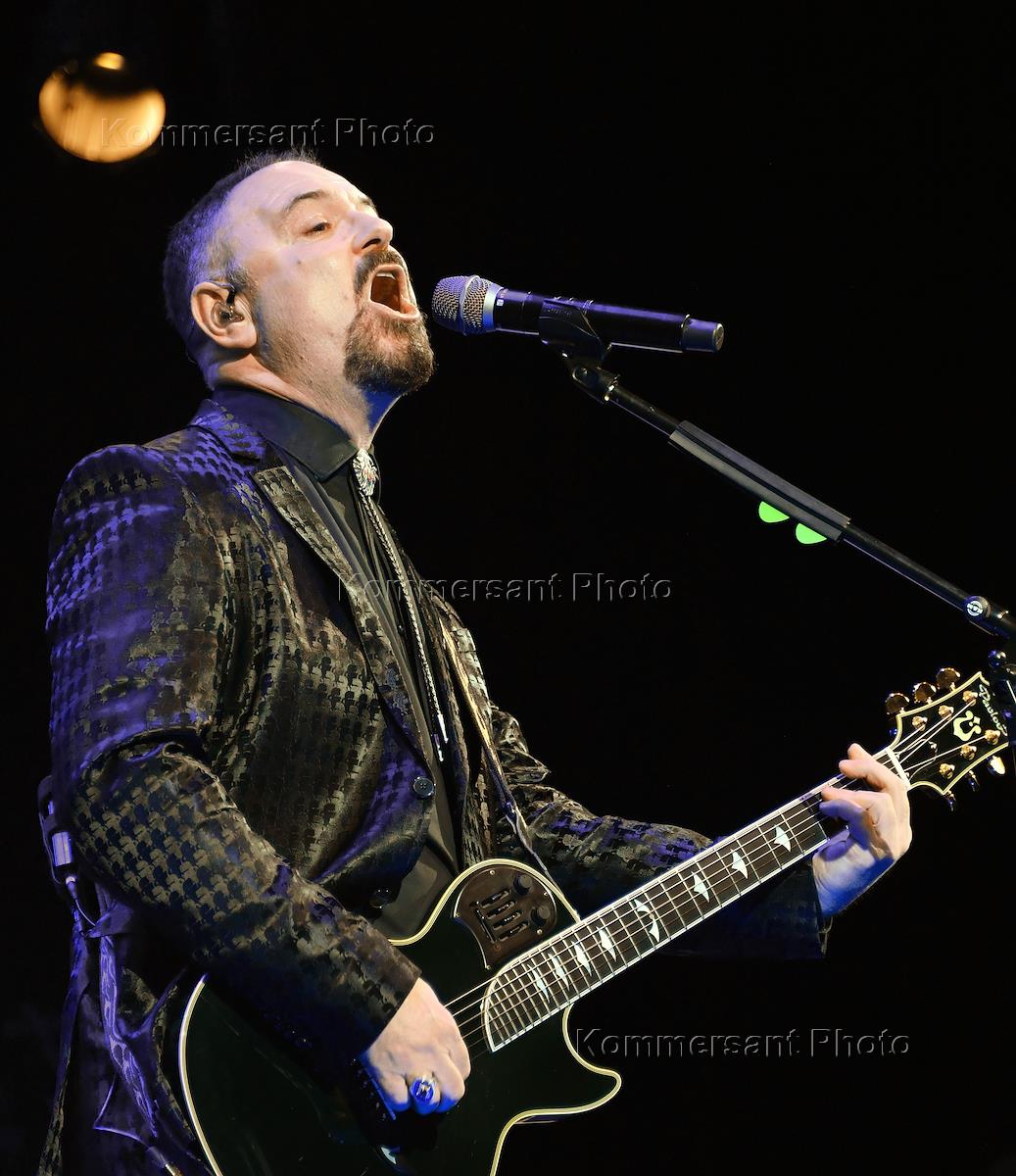 Юбилейный концерт музыканта Максима Леонидова в Московском Дворце Молодежи. Музыкант, лидер группы "Машина времени" Андрей Макаревич во время концерта.
