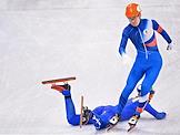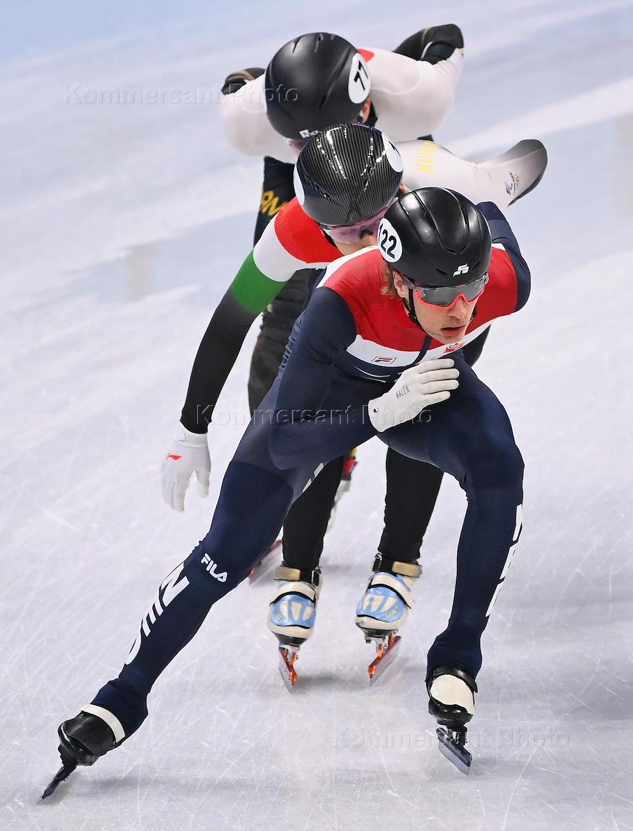 XXIV зимние Олимпийские игры в Пекине. Соревнования по шорт-треку среди мужчин в эстафете на 5000 метров в Столичном дворце спорта (Capital Indoor Stadium). Финал. Член сборной команды Нидерландов Ицхак де Лат во время соревнований.