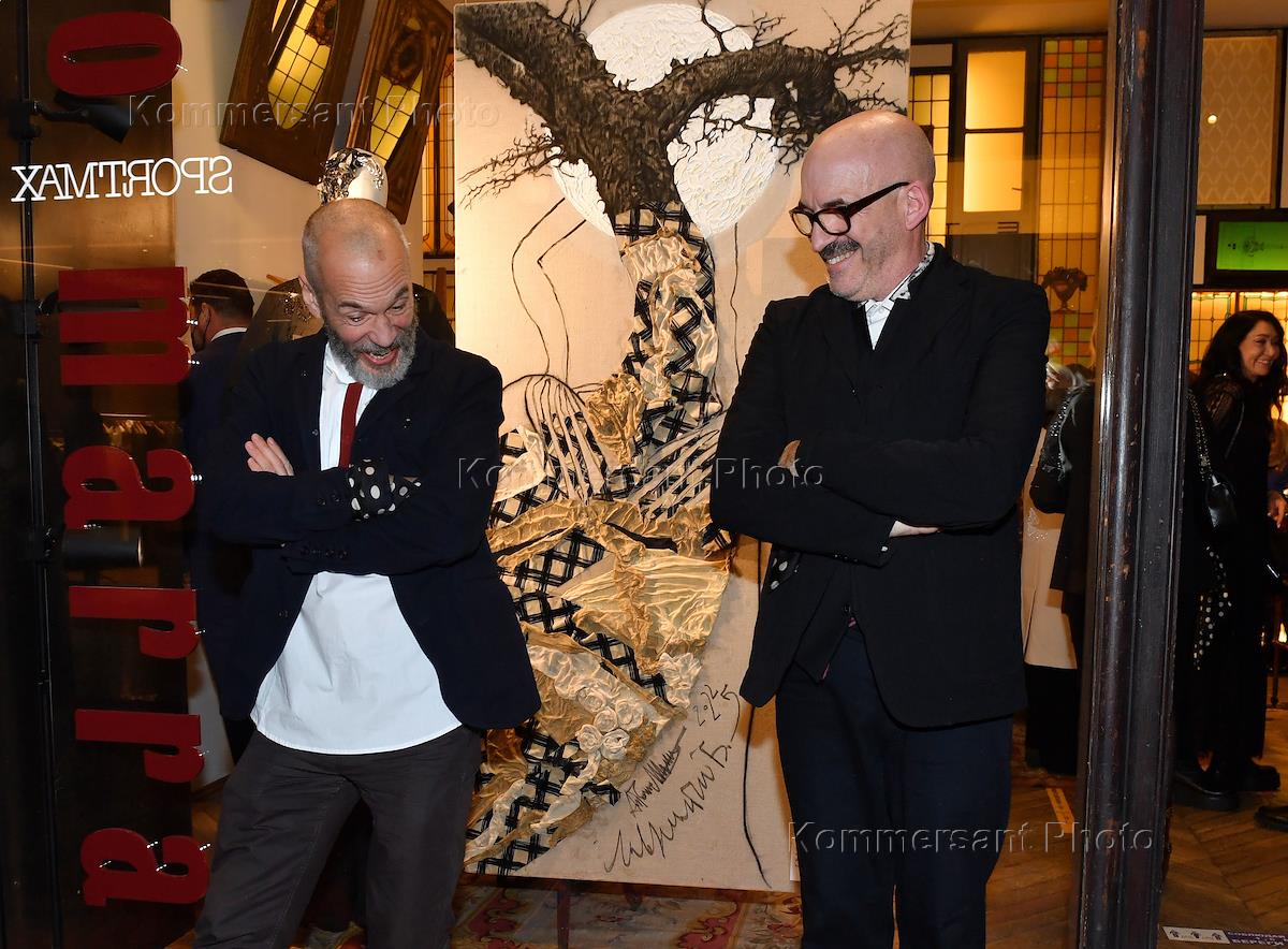 Показ коллекции "осень-зима 22/23" итальянского дизайнера Антонио Марраса (Antonio Marras) в Петровском Пассаже. Итальянский дизайнер Антонио Маррас (слева) и председатель наблюдательного совета компании Bosco di Ciliegi Михаил Куснирович (справа) во время показа.