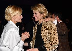 Показ коллекции "осень-зима 22/23" итальянского дизайнера Антонио Марраса (Antonio Marras) в Петровском Пассаже. Актриса Ингеборга Дапкунайте (слева) и актриса, режиссер Надежда Михалкова (справа) во время показа.
