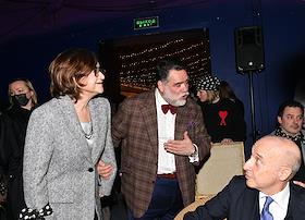 Показ коллекции "осень-зима 22/23" итальянского дизайнера Антонио Марраса (Antonio Marras) в Петровском Пассаже. Итальянский дизайнер Антонио Маррас (слева) и актриса, режиссер и сценарист Рената Литвинова (в центре) во время показа.