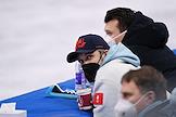 XXIV зимние Олимпийские игры в Пекине. Тренировка российских фигуристов в парном катании в Столичном дворце спорта. Тренер по фигурному катанию, олимпийский чемпион Максим Траньков (в центре) во время тренировки.