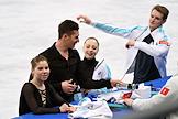XXIV зимние Олимпийские игры в Пекине. Тренировка российских фигуристов в парном катании в Столичном дворце спорта. Слева направо: российские фигуристы, выступающие в парном катании, Анастасия Мишина, Александр Галлямов, Александра Бойкова и Дмитрий Козловский во время тренировки.