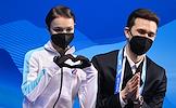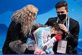 XXIV Winter Olympic Games in Beijing. Figure skating competitions in the Capital Sports Palace. Women. Free program. Russian athlete Anna Shcherbakova (left) and coach, choreographer Daniil Gleikhengauz (right) after the performance.