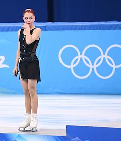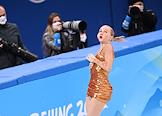XXIV Winter Olympic Games in Beijing. Figure skating. Women. Free program in the Capital Palace of Sports. Russian figure skater Alexandra Trusova (center) after her performance.