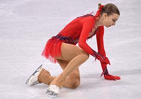 XXIV Winter Olympic Games in Beijing. Figure skating competitions in the Capital Sports Palace. Women. Free program. Russian figure skater Alexandra Trusova during a performance.