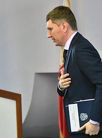Коллегия Федеральной службы по интеллектуальной собственности (Роспатент), на которой был представлен новый руководитель Роспатента Юрий Зубов. Министр экономического развития России Максим Решетников во время коллегии.