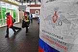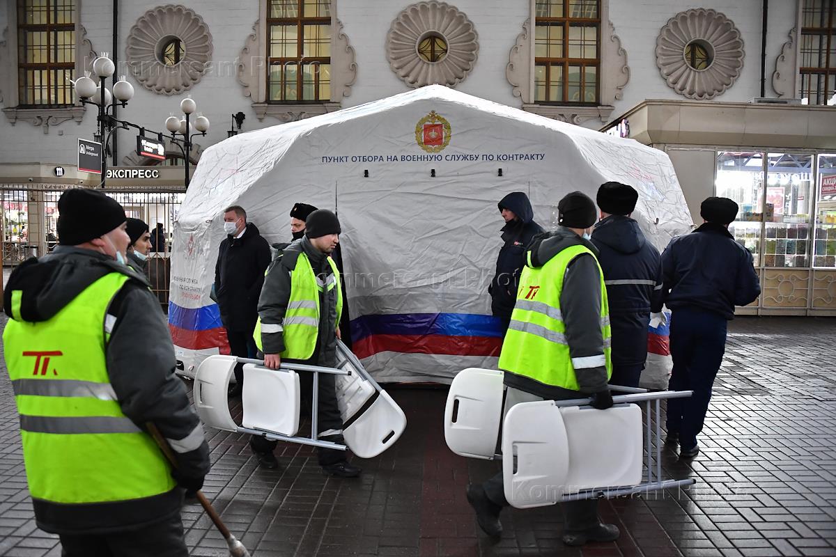 Мобильный пункт отбора на военную службу по контракту на Казанском железнодорожном вокзале.