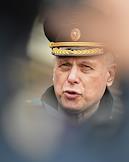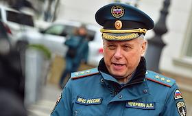 Ситуация в Ростове-на-Дону в период обострения ситуации в самопровозглашенных Донецкой Народной Республике (ДНР) и Луганской Народной республике (ЛНР). Временно исполняющий обязанности главы МЧС России Александр Чуприян во время общения с журналистами.