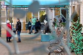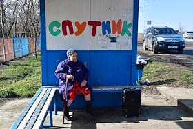 Размещение граждан, эвакуированных из-за обострения ситуации в самопровозглашенных Донецкой и Луганской народных республиках (ДНР и ЛНР), в детский лагерь "Котлостроитель" Ростовской области. Жанровая фотография. Остановка общественного транспорта "Спутник".