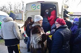 Размещение граждан, эвакуированных из-за обострения ситуации в самопровозглашенных Донецкой и Луганской народных республиках (ДНР и ЛНР), в пансионат "Звезда" Ростовской области. Мобильный пункт Сбербанка, открытый для эвакуированных.