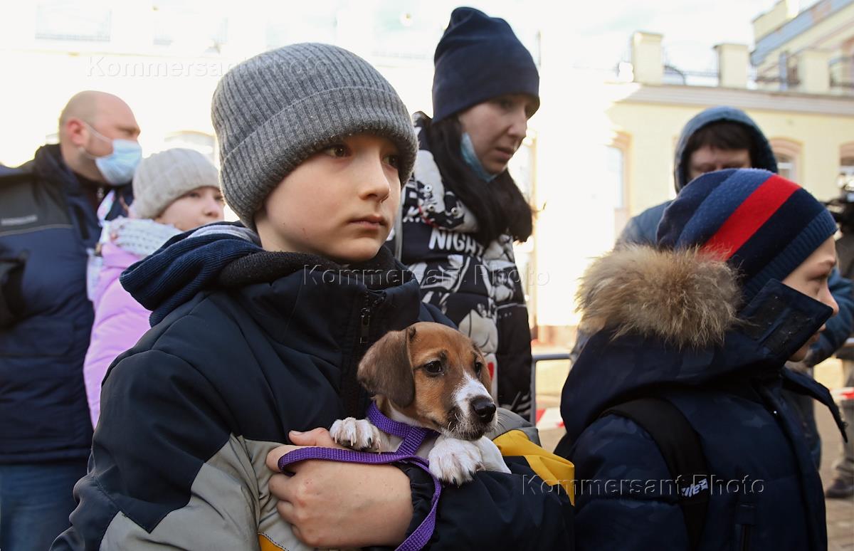 Встреча первого поезда с беженцами из Донецкой народной республики (ДНР) на железнодорожном вокзале "Воронеж-1".