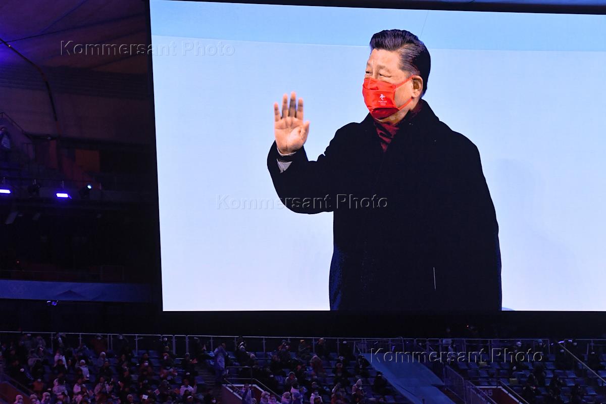 XXIV зимние Олимпийские игры в Пекине. Церемония закрытия на Национальном стадионе "Птичье гнездо". Председатель КНР Си Цзиньпин во время церемонии.