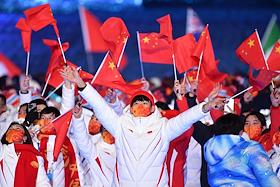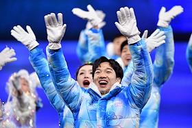 XXIV зимние Олимпийские игры в Пекине. Церемония закрытия на Национальном стадионе "Птичье гнездо". Члены сборной команды Китая во время церемонии.