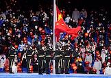 XXIV зимние Олимпийские игры в Пекине. Церемония награждения победителей в соревнованиях по лыжным гонкам на 30 км среди мужчин на Национальном стадионе "Птичье гнездо". Церемония поднятия флагов.