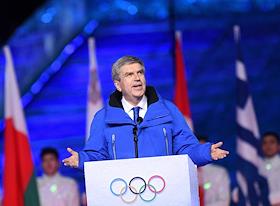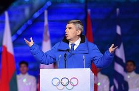XXIV зимние Олимпийские игры в Пекине. Церемония закрытия на Национальном стадионе "Птичье гнездо". Президент Международного олимпийского комитета (МОК) Томас Бах во время церемонии.