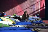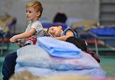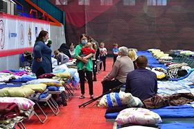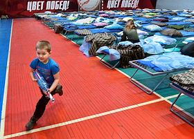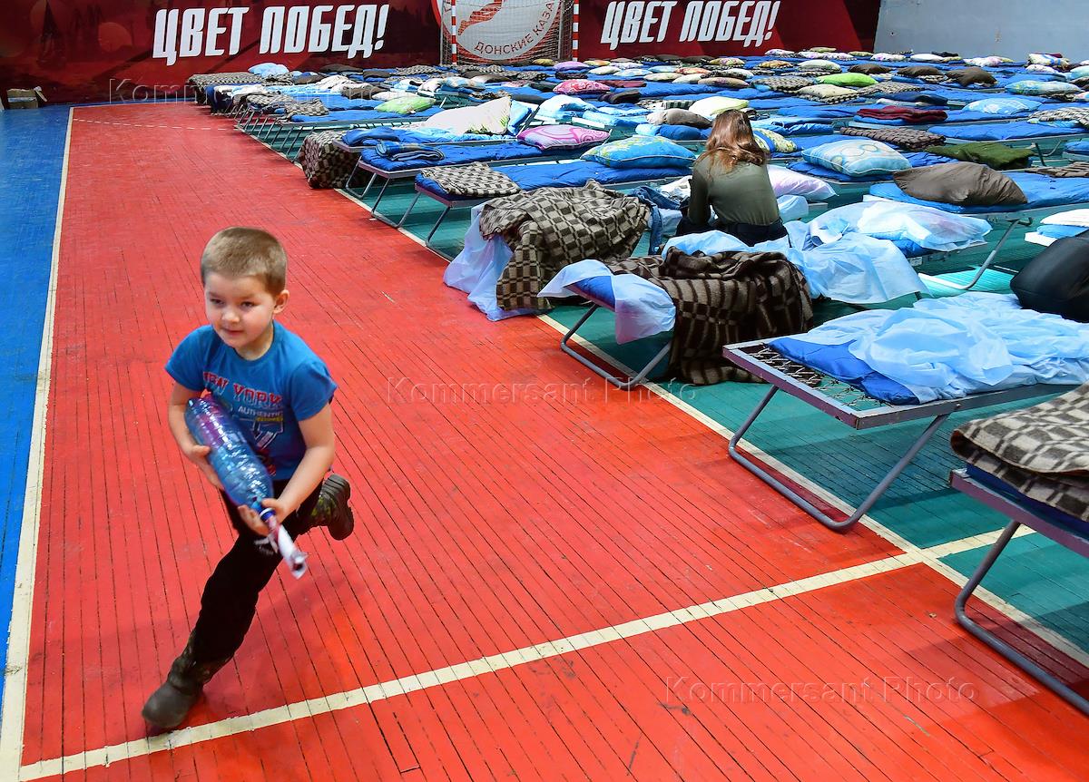 Ситуация в Ростовской области в период обострения ситуации в самопровозглашенных Донецкой Народной Республике (ДНР) и Луганской Народной республике (ЛНР). Прибытие эвакуированных граждан ДНР в Ростовскую область. Эвакуированные граждане Донецкой народной республики (ДНР) в пункте временного размещения в спортивной школе № 13.